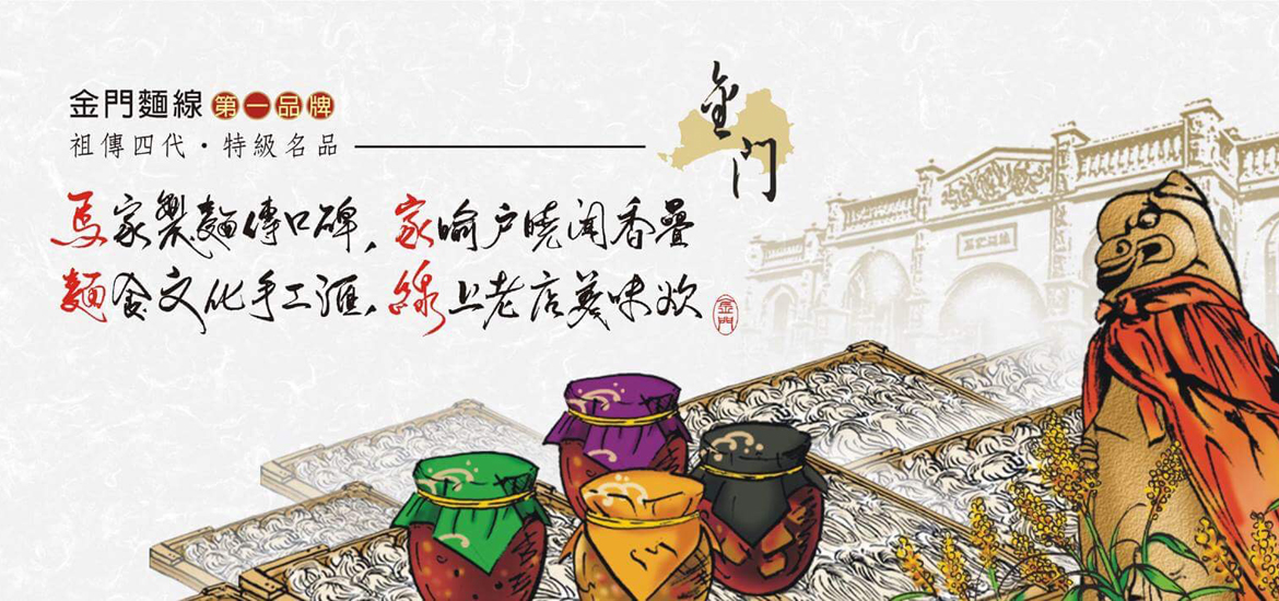馬家麵線由創始人馬森殿在廈門同安老家以製造麵線起家,民國初年落腳金門,由廈門傳入金門,設址南門里舊街內。現已祖傳四代已有麵線百年老店之美譽金門風大,日照強,擁有做麵線的絕佳條件。傳統手工製麵技術,是金門製作麵線的翹楚,更是無人出其右。引用金門純淨水質,配合當地獨特天候,經由風、陽光自然曝曬乾燥,絕不添加防腐劑、不漂白、不必放入冰箱保存,常溫隨意存放,絕不發霉,變質,亦不失原有口味。麵線不鹹、香Q,道地家鄉口感,一直以來深受金門本島店家推崇為金門麵線第一品牌,並受廣大消費者喜愛,加入高粱、山藥、番茄、蔬菜、南瓜、紫地瓜等七款不同口味,增加麵線的口味變化,進而作為居家食用、饋贈親友更多選擇。馬家麵線觀光工廠兼具生產、展示、觀光、解說並提供觀光客試吃等功能、增加體驗金門麵線文化,推廣產業觀光。